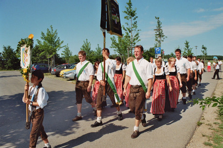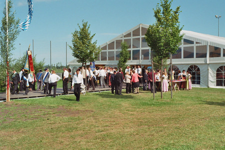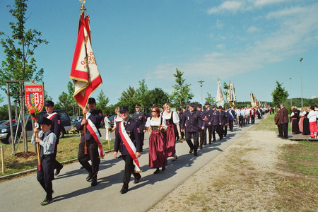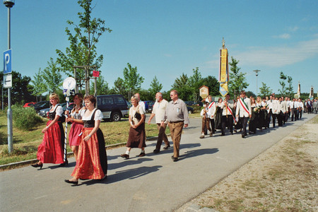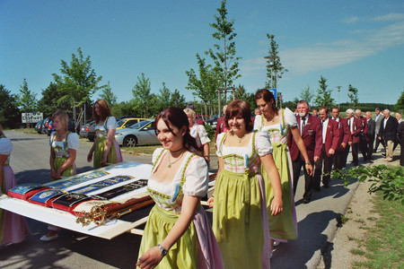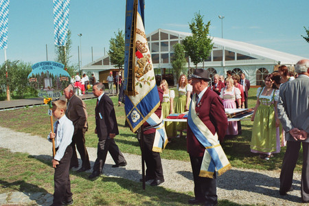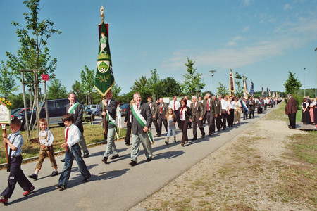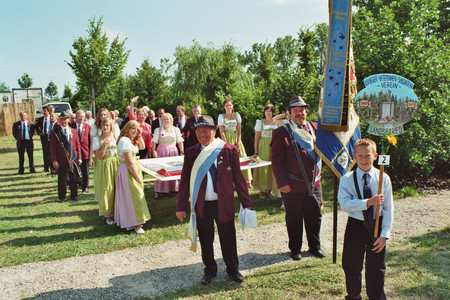 Ab 9.30 Uhr begann die Aufstellung zum Kirchenzug. Die neue Fahne und die Fahnenbänder wurden